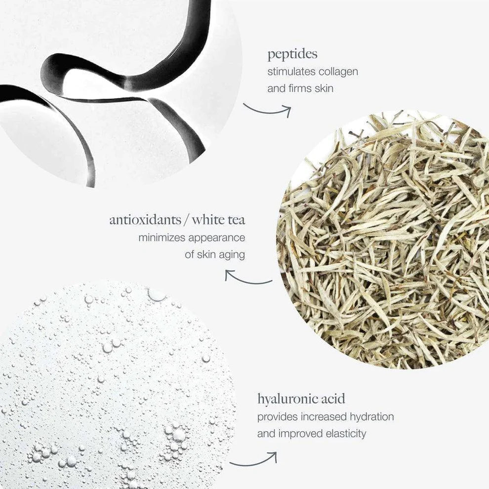 Inactive Ingredients: Water/Aqua/Eau, Butylene Glycol, Carthamus Tinctorius (Safflower) Oleosomes, C12-15 Alkyl Benzoate, Cyclopentasiloxane, Glycerin, Dimethicone, Dimethyl Capramide, Palmitoyl Tripeptide-5, Aniba Rosodora (Rosewood) Wood Extract, Rose Flower Oil, Pelargonium Graveolens Flower Oil, Helianthus Annuus (Sunflower) Seed Oil, Eugenia Caryophyllus (Clove) Leaf/ Flower Oil, Citrus Medica Limonum (Lemon) Peel Oil, Saccharomyces Cerevisiae Extract, Camellia Sinensis Leaf Extract, Citrus Medica Limonum (Lemon) Peel Extract, Laminaria Digitata Extract, Dipotassium Glycyrrhizate, Lecithin, Glucosamine HCL, Arginine/Lysine Polypeptide, Tocopheryl Acetate, Squalane, Sodium Hyaluronate, Polysilicone-11, Glycine Soja (Soybean) Protein, 1,2-Hexanediol, Caprylic/Capric Trilyceride, Cetearyl Alcohol, Stearic Acid, Ceteareth-20, Sodium Polyacrylate, Hydroxyethyl Acrylate/Sodium Acryloyldimethyl Taurate Copolymer, Sodium Acrylates Copolymer, Decyl Glucoside, Polysorbate 80, Urea, Galactoarabinan, Glyceryl Polyacrylate, Polysorbate 60, Aminomethyl Propanol, Disodium EDTA, Ethylhexylglycerin, Phenoxyethanol, Titanium Dioxide (CI77891).