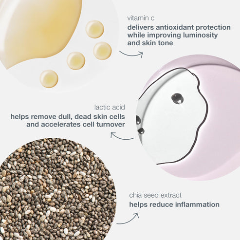 Air/Aqua/Eau, Gliserin, Butylene Glycol, Ethoxydiglycol, Asid Laktik, Ekstrak Biji Salvia Hispanica (Chia), Sodium PCA, Palmitoyl Tripeptide-5, Ekstrak Bunga Sophora Japonica, Ascorbyl Methylsilanol Pectinate, Sodium Hyaluronate, Tocopherol, Dipotassium Glycyrrhizate, Aminopropyl Ascorbyl Phosphate, Trehalose, Polyacrylate-13, Propanediol, Minyak Kulit Citrus Grandis (Grapefruit), Minyak Biji Helianthus Annuus (Bunga Matahari), Polyisobutene, Methylpropanediol, Karagenan, Pentylene Glycol, Glyceryl Polyacrylate, Caprylyl Glycol, Ethylhexylglycerin, Tetrasodium Glutamate Diacetate, Gum Xanthan, Polysorbate 20, Limonene, Sodium Hidroksida, Phenoxyethanol.
