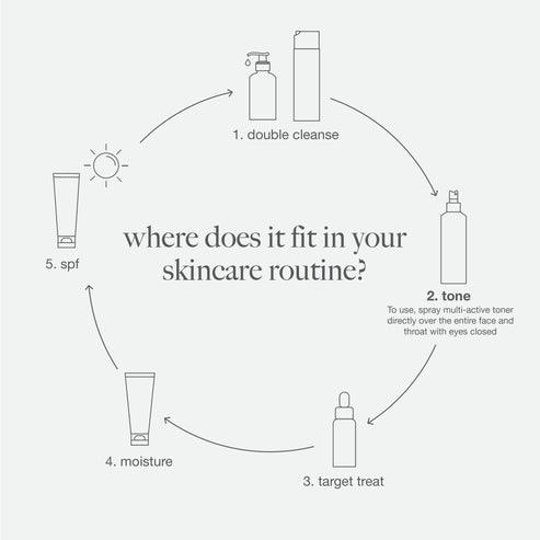 Selepas melakukan Pembersihan Berganda Dermalogica, semburkan terus ke seluruh muka dan leher dengan mata tertutup. Ikuti dengan Pelembap Dermalogica yang ditetapkan.